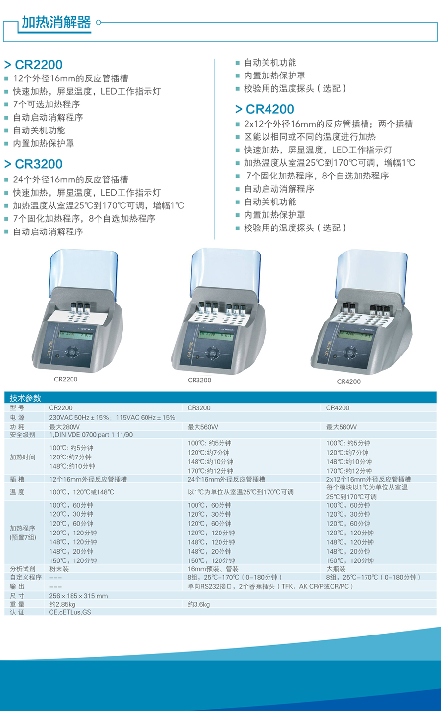 德國WTW CR2200/CR3200/CR4200 熱反應(yīng)器(消解器)是測量總氮和總磷時(shí)對水樣加熱消解;德國WTW CR2200/CR3200/CR4200 熱反應(yīng)器(消解器)有多個(gè)加熱孔并有LCD顯示功能等。