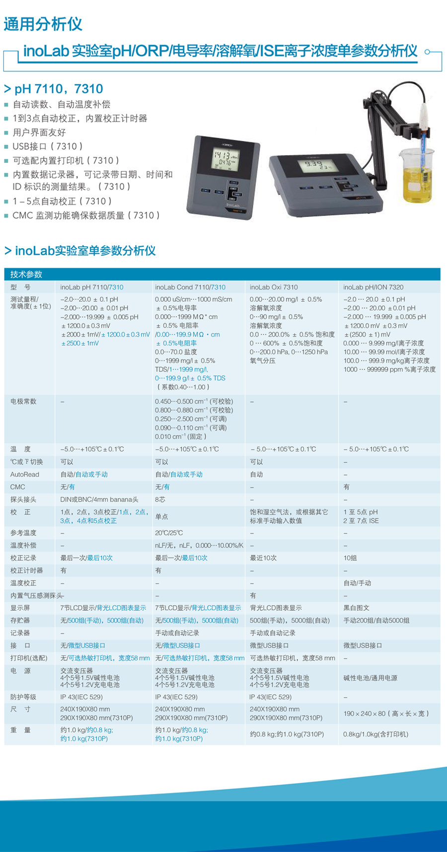 德國WTW inoLab pH7110/7310臺(tái)式PH/ORP水質(zhì)分析檢測儀簡介