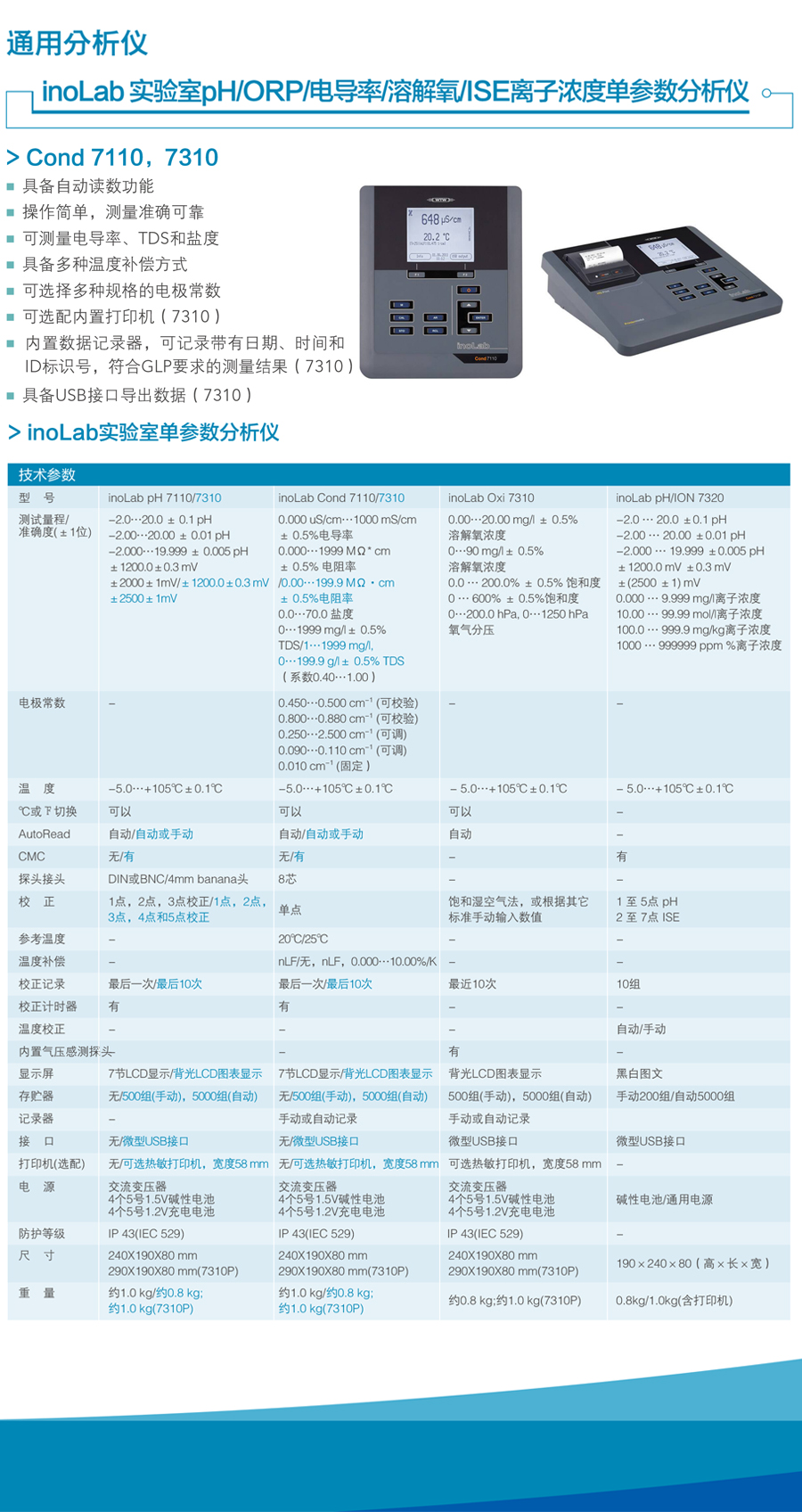 inoLab® Cond 7310P 實(shí)驗(yàn)室精密電導(dǎo)率測(cè)定儀,僅主機(jī),主機(jī)內(nèi)置熱敏打印機(jī),電源適配器,支架和操作手冊(cè),軟件和USB電纜