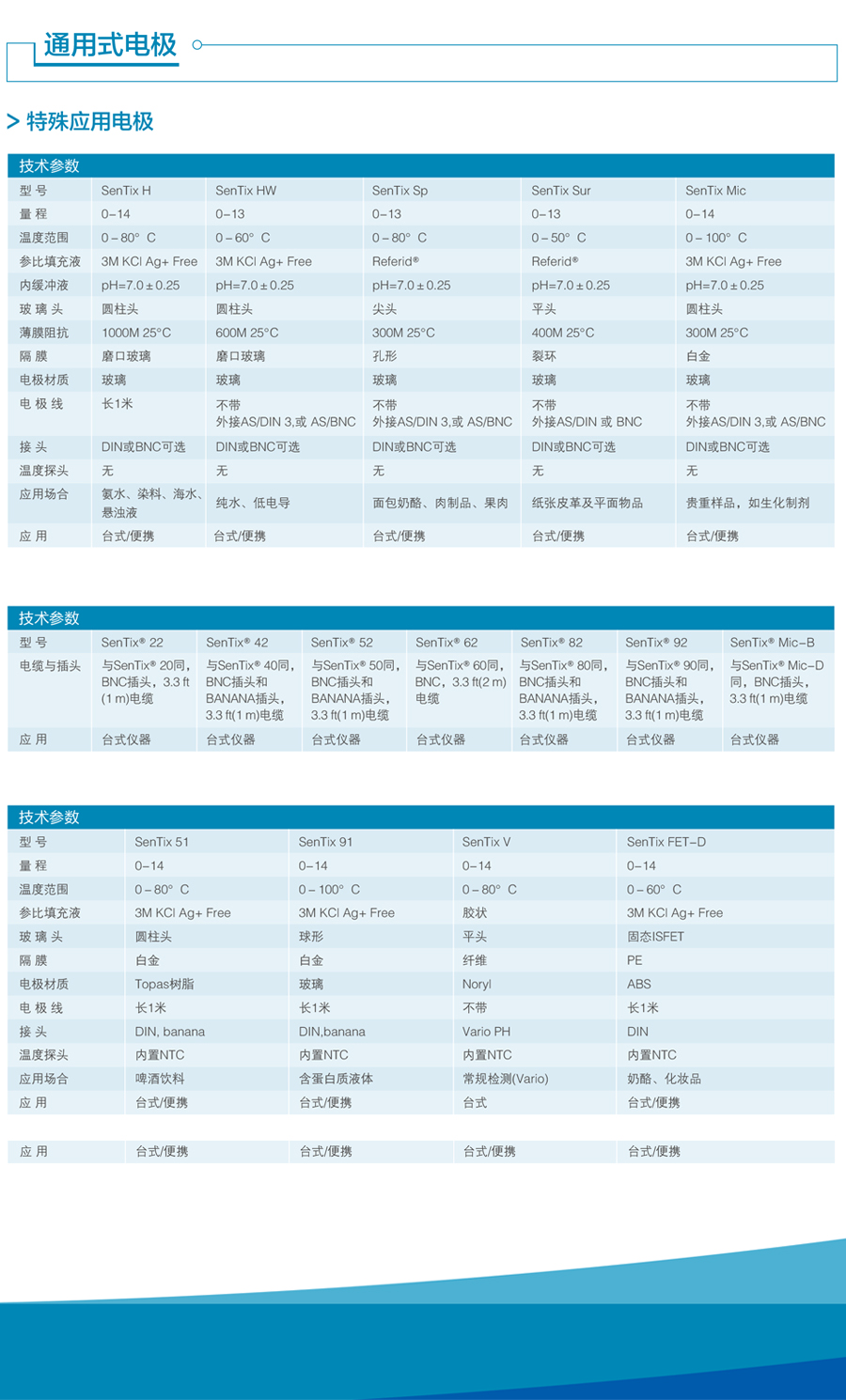 | 參比填充液 | 3M KCl Ag+ Free | 3M KCl Ag+ Free | Referid® | Referid® | 3M KCl Ag+ Free | Gel | 3 mol/L KCl | |