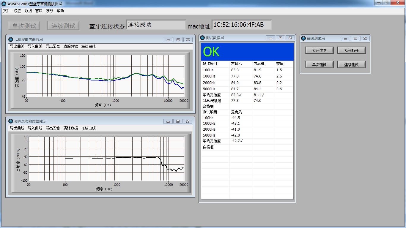2、藍(lán)牙麥克風(fēng)測試:頻率范圍:20 Hz~20k Hz