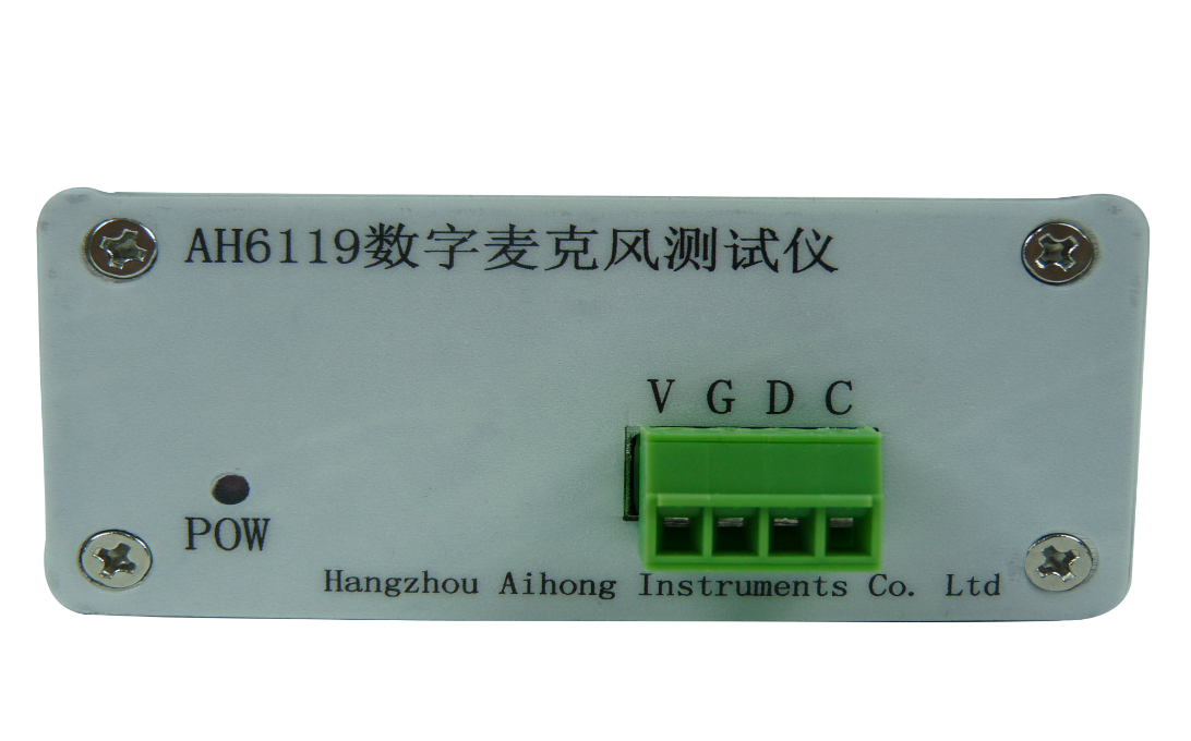 數(shù)字麥克風(fēng)具有靈敏度高,抗干擾能力強(qiáng)等特點(diǎn),隨著科學(xué)技術(shù)的發(fā)展,數(shù)字麥克風(fēng)的應(yīng)用越來越廣泛,AH6119型數(shù)字麥克風(fēng)測試儀,就是一款專門用于PDM格式信號(hào)輸出的數(shù)字麥克風(fēng)測試儀。該儀器有測試信號(hào)和功率信號(hào)兩路輸出,可直接和耳機(jī)連接判斷數(shù)字麥克風(fēng)是否正常工作(有音頻信號(hào)輸出)。該儀器特別適合數(shù)字麥克風(fēng)生產(chǎn)線上使用。其實(shí)物圖前后面板示意圖如圖1、圖2所示。