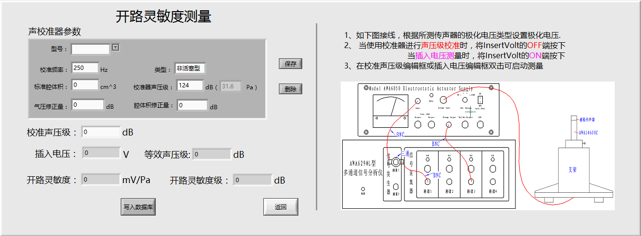 插入電壓法開路靈敏度測(cè)量 靜電激勵(lì)法掃頻測(cè)量傳聲器頻 相位測(cè)量 |