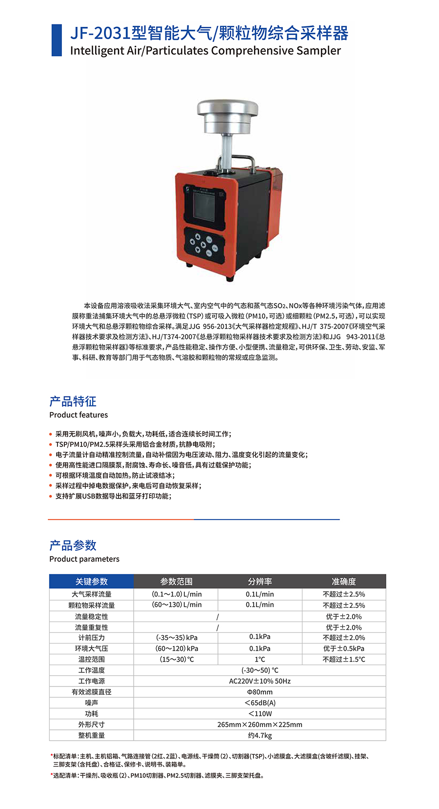 產(chǎn)品名稱(chēng):JF-2031型智能大氣/顆粒物綜合采樣器