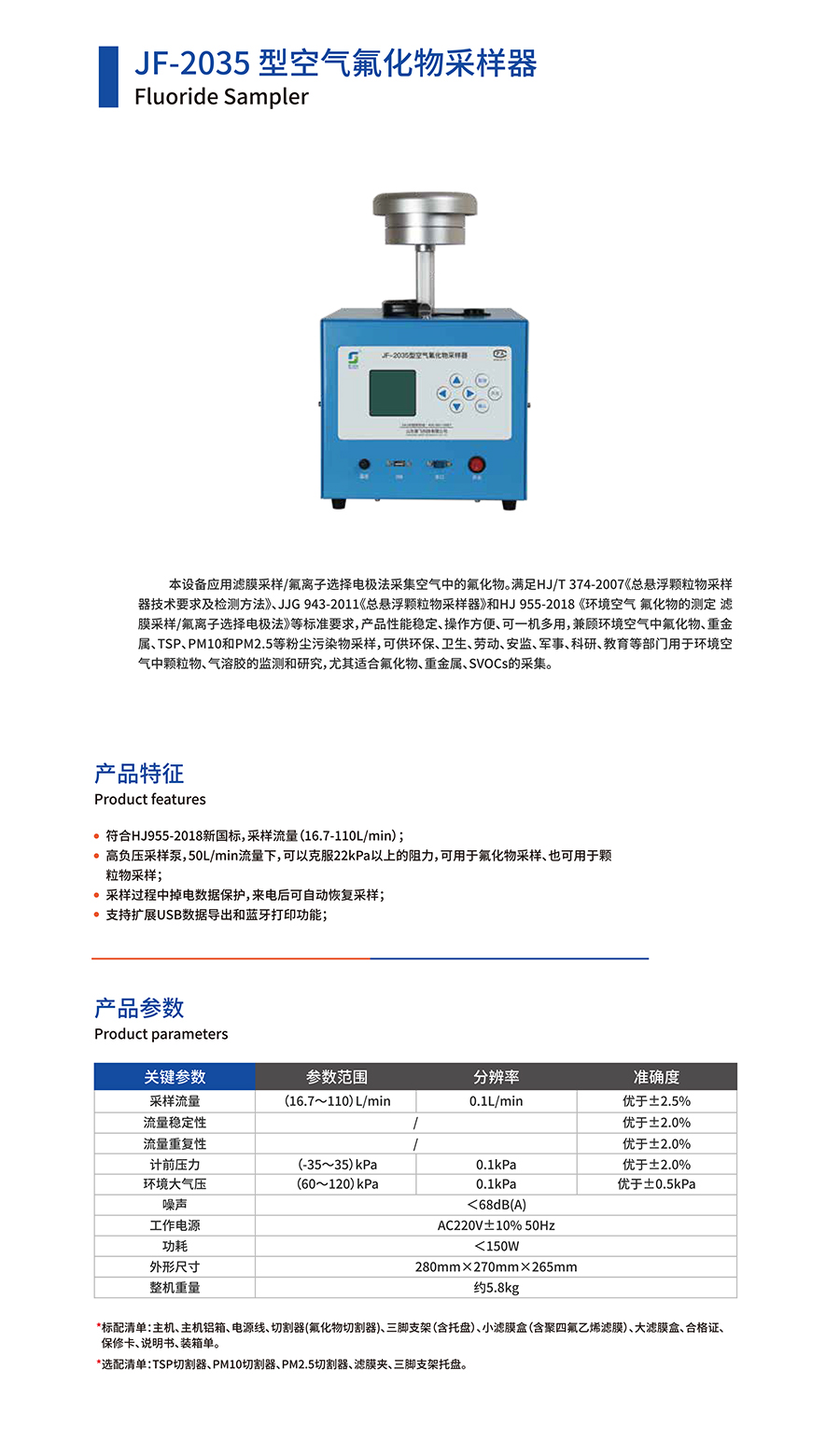 產(chǎn)品名稱:JF-2035型空氣氟化物采樣器