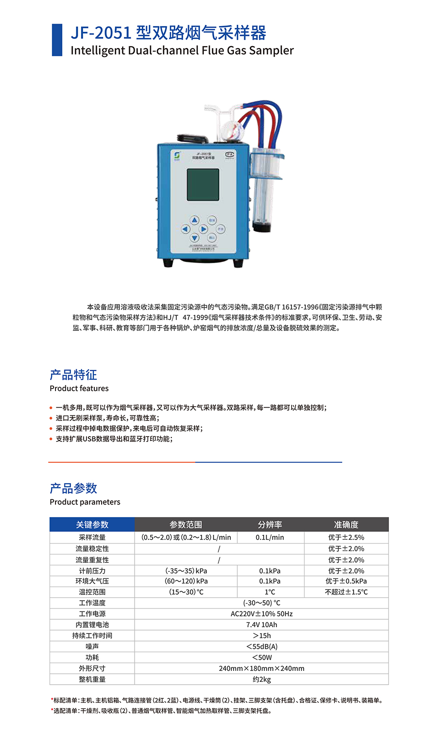 產(chǎn)品名稱:JF-2051型雙路煙氣采樣器