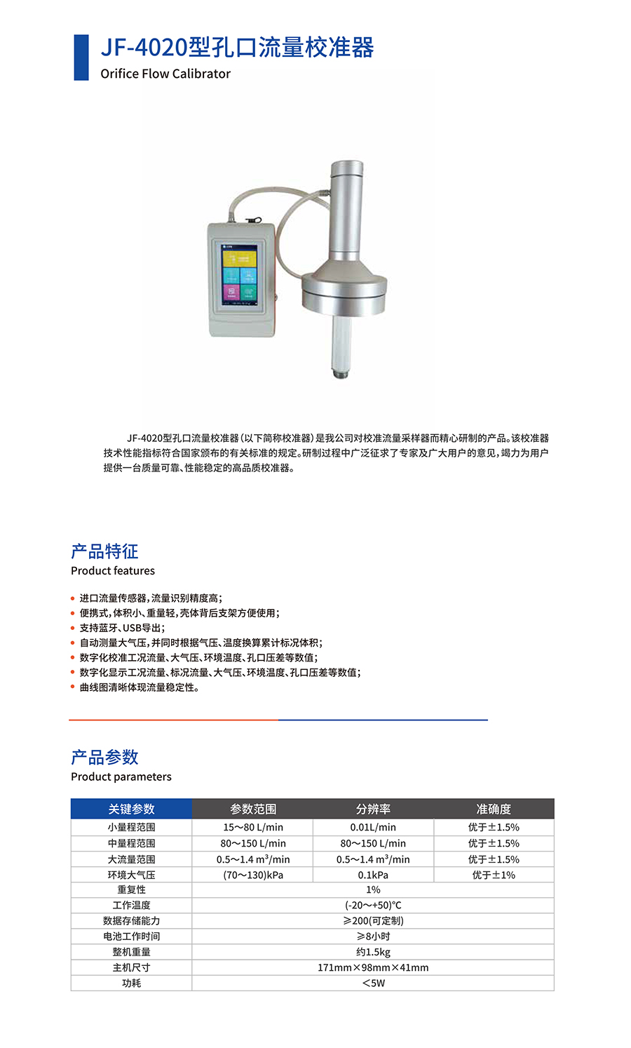 產(chǎn)品名稱:JF-4020型孔口流量校準(zhǔn)器